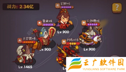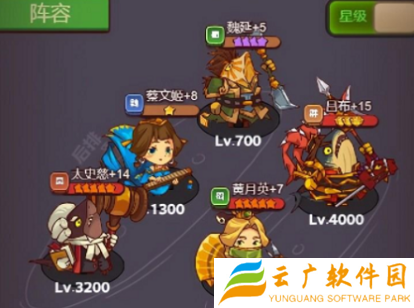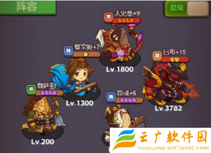 非常稳定的推图阵容,前中后期都可以用,如果前你的吕布强度够高,可以只上吕布+太史慈,这样减少武将出手时间,推图更快,当然前期2000关以内,大家的主将都还没有那么强,就需要角色相互配合才能更加有效的刷图。