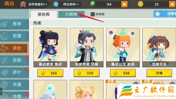 3、然后点击查看已拥有的皮肤(装扮)。