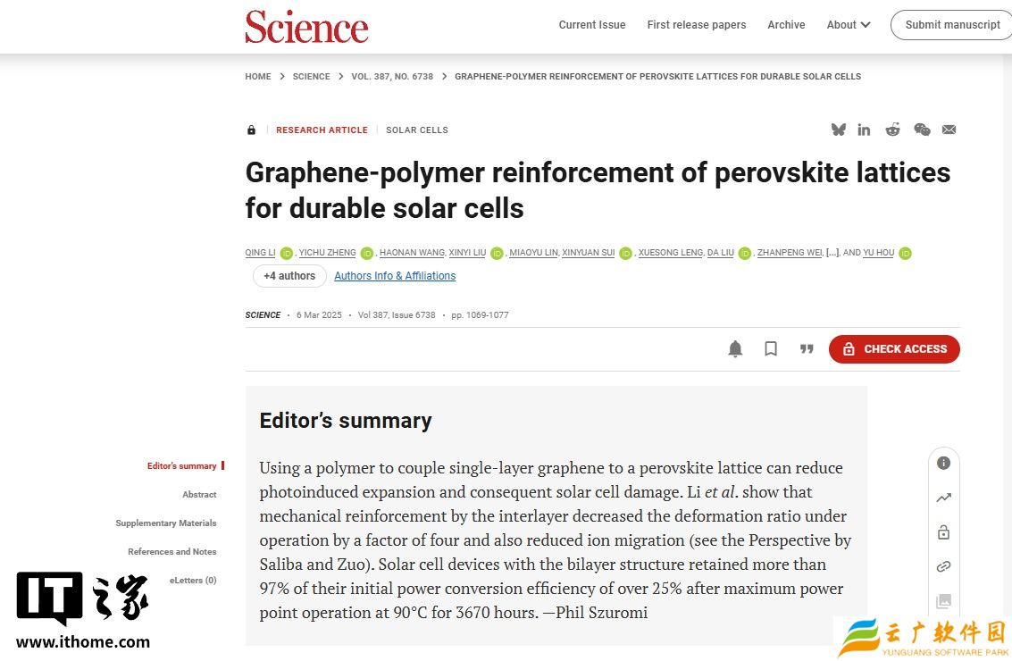 本站 3 月 7 日消息,钙钛矿太阳能电池因其高效、低成本、轻量化等特点,被视为未来光伏技术的重要方向。然而,这类电池存在一个关键问题 —— 稳定性较差,难以长期使用。