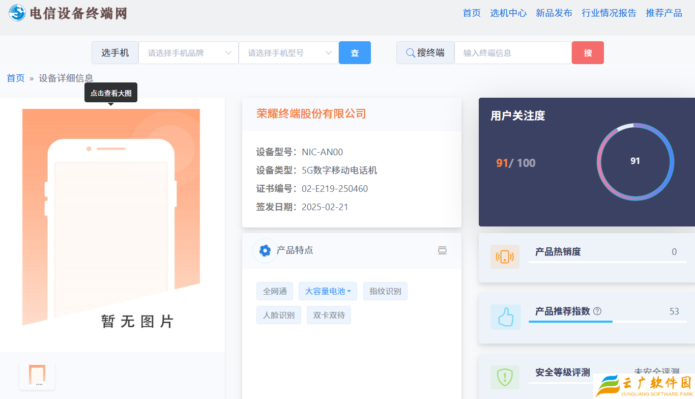 本站 3 月 3 日消息,型号为 NIC-AN00 的荣耀新机已现身电信设备终端网,新机暂未公布外观信息,但支持 5G 网络、指纹识别、人脸识别、双卡双待等功能。