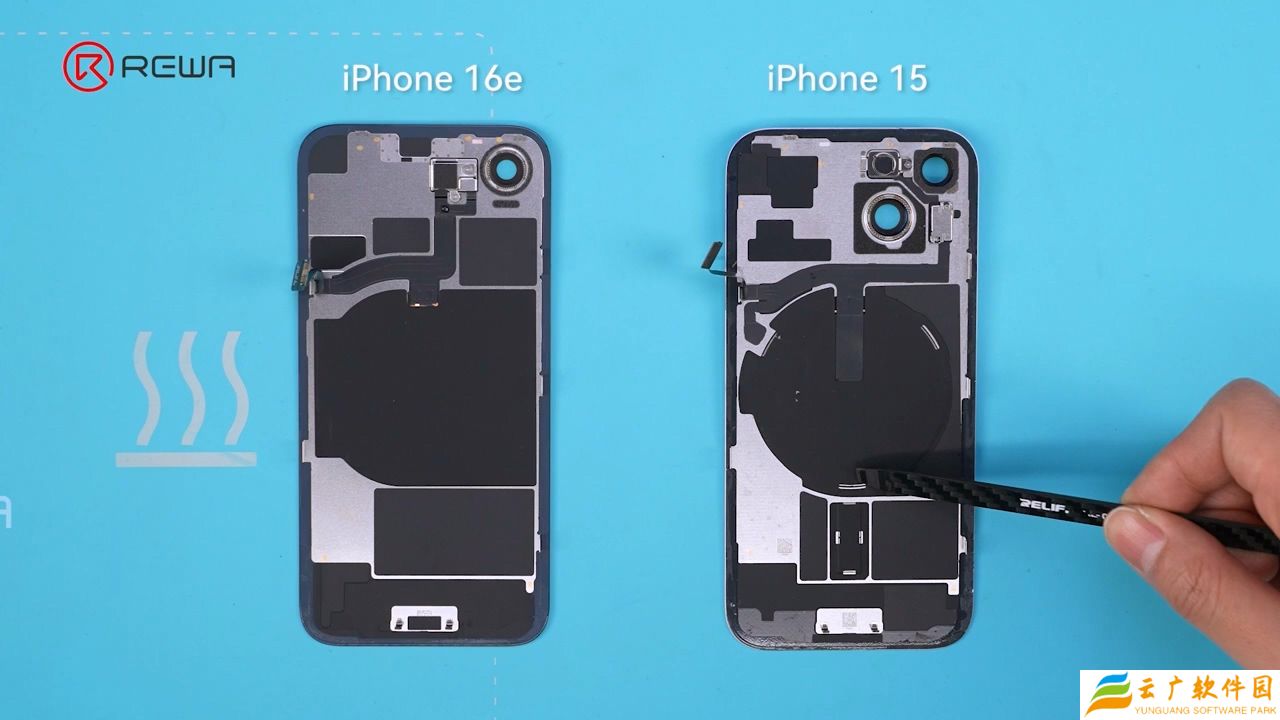 最后,视频还显示 iPhone 16e 缺少用于无线充电的 MagSafe 磁铁。