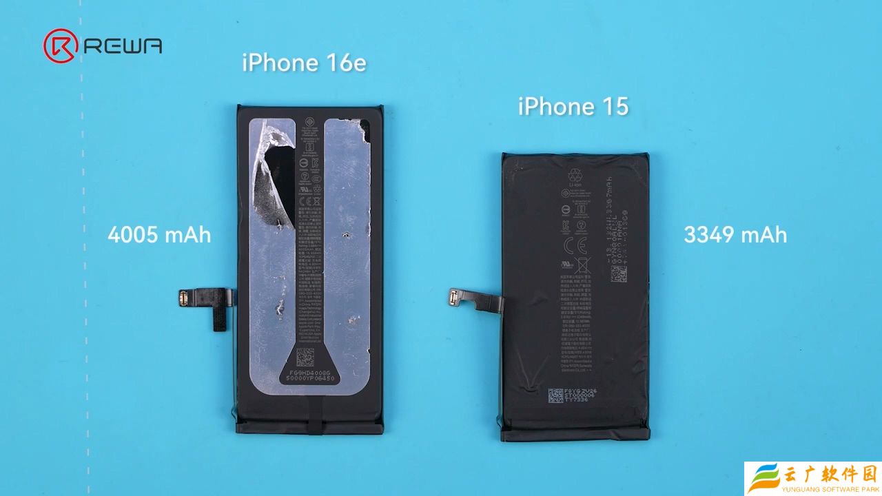 拆解视频显示,iPhone 16e 的电池容量为 4005 mAh,比普通 iPhone 16 的 3561 mAh 电池容量增加了 12%;以瓦时(Wh)为单位,iPhone 16e 的电池容量为 15.55 Wh,而 iPhone 16 为 13.83 Wh。