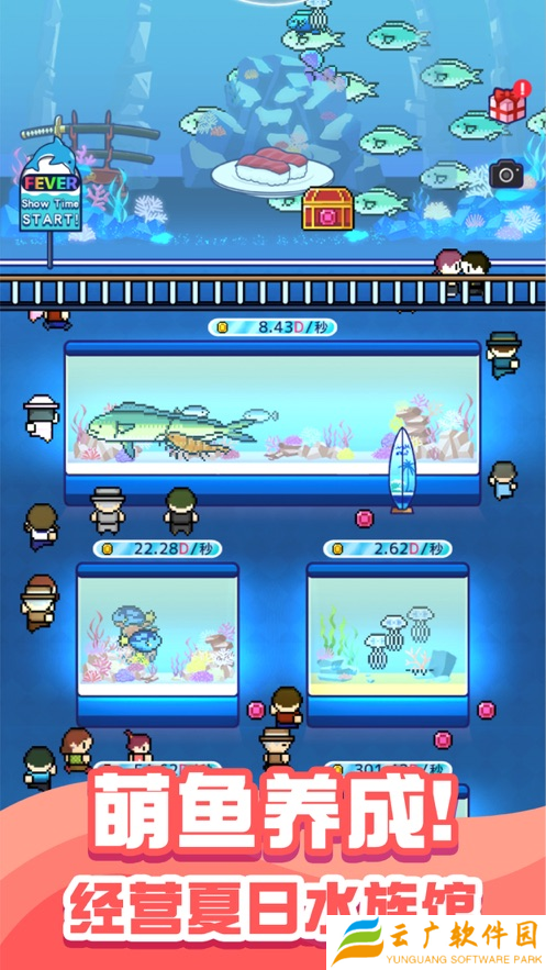 作为水族馆老板的你,经营水族馆也是你的重要任务,前来水族馆的客人比较少怎么办,玩家需要仔细的思考以下哦,想要水族馆人气更高,不如就让水族馆中的各种鱼类来一场吸人眼球的海洋表扬吧,小鱼们也将会为了扩建水族馆而努力。