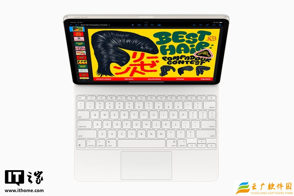 适用于 iPad Air 的全新妙控键盘内置触控板面积加大,让操控更加精准;新配备的一排 14 个功能键可快速调用屏幕亮度和音量控制等功能。新款妙控键盘通过磁力吸附,智能接点无需蓝牙即可立即连接电源和数据。铝金属支架自带支持直通充电的 USB- C 端口。新款妙控键盘采用奇妙悬浮式设计,提供白色外观,11 英寸版本起售价为 RMB 2,199,13 英寸版本起售价为 RMB 2,399。