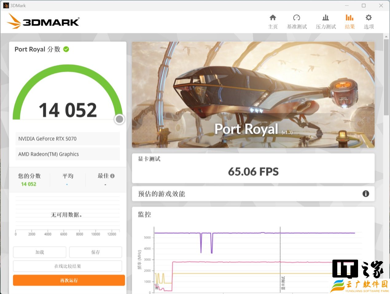 在 3DMark Portal Royal 实时光追测试中,NVIDIA GeForce RTX 5070 显卡的综合分为 14052 分,对比 NVIDIA GeForce RTX 4070 显卡的 11006 分,提升幅度达到了 27.6%。