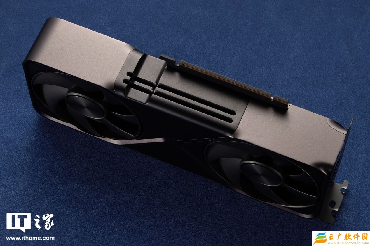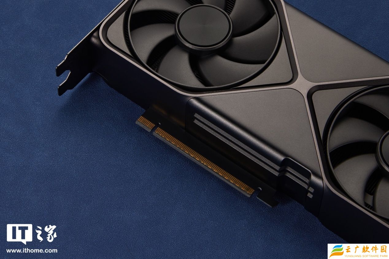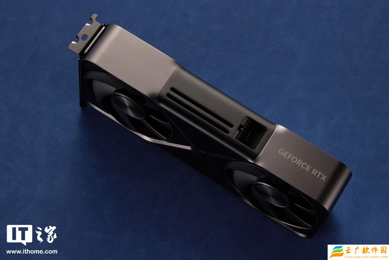 显卡的两侧均采用 2 组散热开口,其余部分均被厚实的“沙漏”装甲包裹起来。一侧的散热开口旁边就是斜向 45℃设计的 16pin(12+4)供电接口,更右侧的 GeForce RTX 字母标志并无灯效,尽显简约与克制。