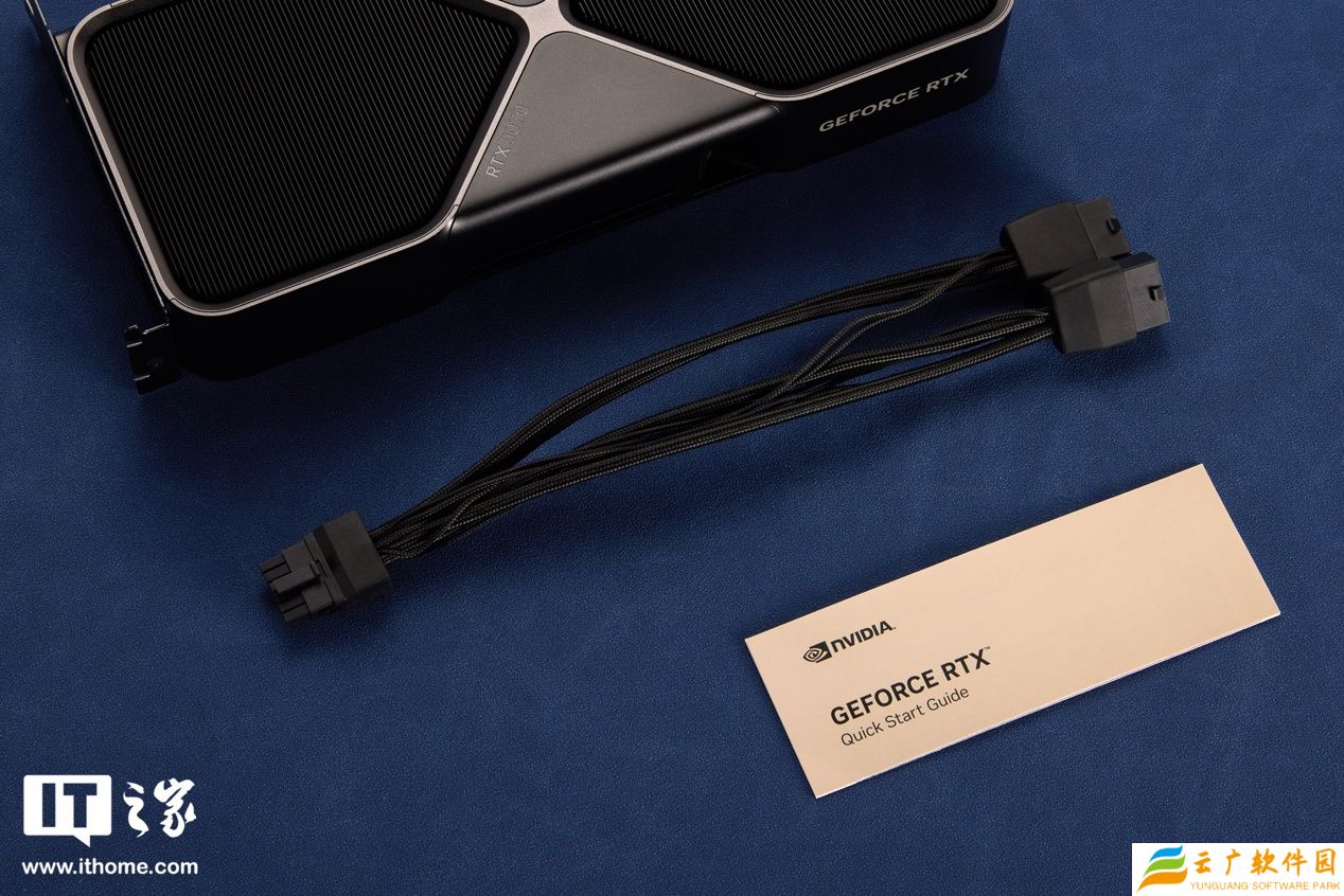配件方面,包装内附有 1 根黑色尼龙材质 16pin 转双 8pin 的电源转接线以及 1 本快速入门指南。