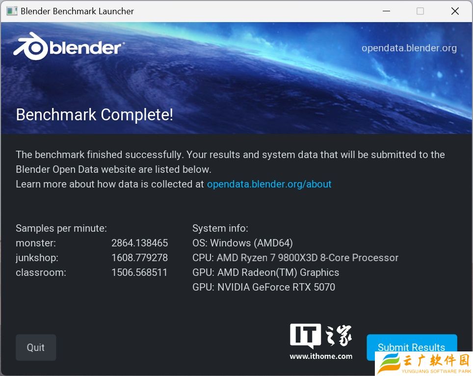 在 Blender 基准测试的 3 场景渲染中,NVIDIA GeForce RTX 5070 显卡的渲染性能相较 NVIDIA GeForce RTX 4070 显卡提升分别约为 12.1%、27.6%、13.6%。