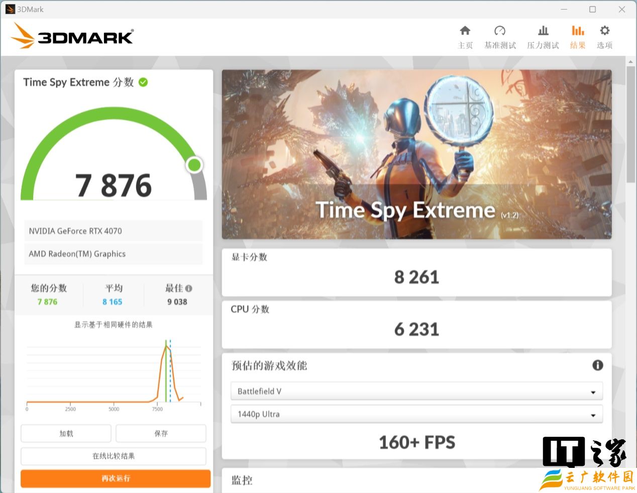 RTX 4070 显卡的 3 个场景分别拿到了 2554 分,1260 分、1325 分;