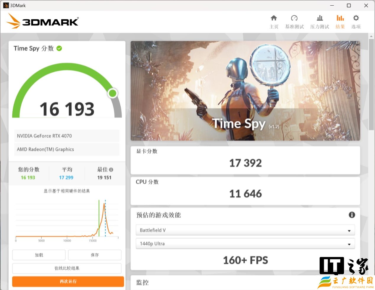 在 3DMark Time Spy DX12 测试中,NVIDIA GeForce RTX 5070 显卡分达到了 22300 分,对比 NVIDIA GeForce RTX 4070 显卡的 17392 分,提升幅度约 28.2%。