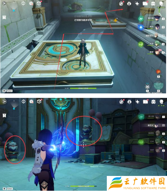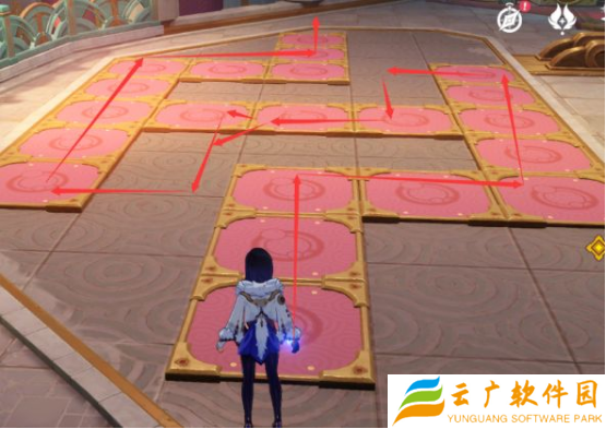 10、上去之后,玩家先击败看守的敌人后与林尼分开调查,需要完成魔术解谜,路线如下图: